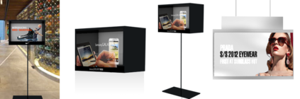 Ambience LCD displays - perfect for product display cases - allowing you to imbed pictures and video in the display case glass while maintaining sight of the product inside.